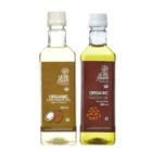 Product 1: 100 percent certified organic coconut oil, made from the finest quality coconuts sourced from certified organic farms across India, 100 percent cold pressed oil