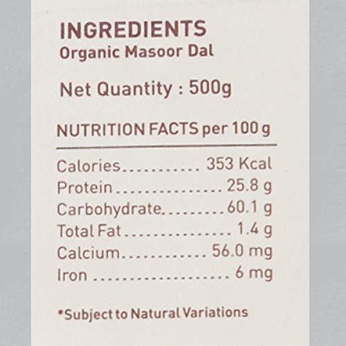 100 percent certified organic masoor daal, made from the finest quality pulses sourced from certified organic farms across India